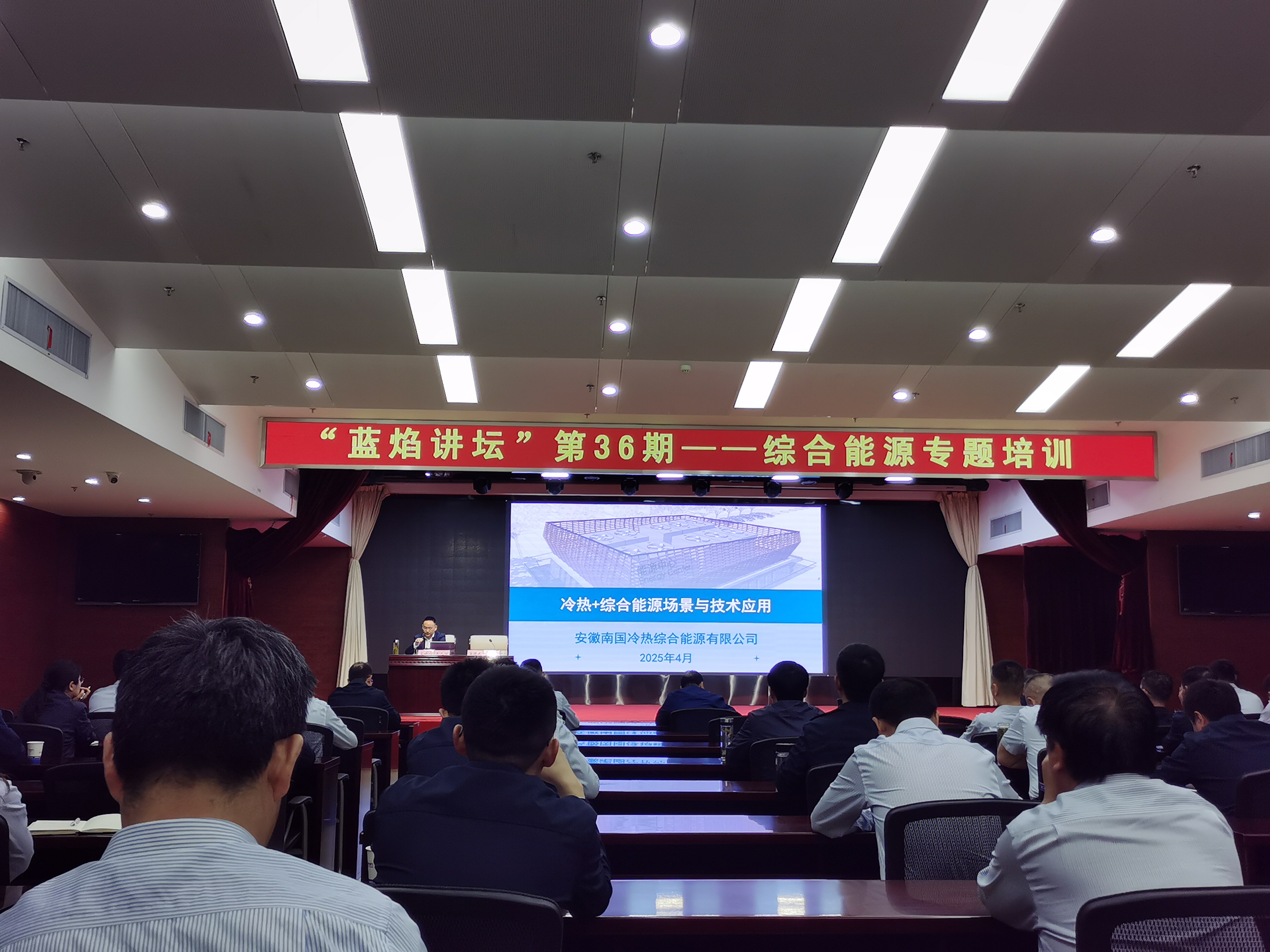? 2025年4月9日上午,安徽南國冷熱綜合能源有限公司董事長王光臨受合燃華潤燃氣公司之邀,前往合肥燃氣大廈進行綜合能源專題培訓。此次培訓旨在推進合燃華潤公司綜合能源業(yè)務(wù)落地,提高從業(yè)人員綜合能源業(yè)務(wù)認知與服務(wù)能力。合燃華潤公司包括董事長、總經(jīng)理在內(nèi)的公司中高層以上管理人員約60人參加培訓。